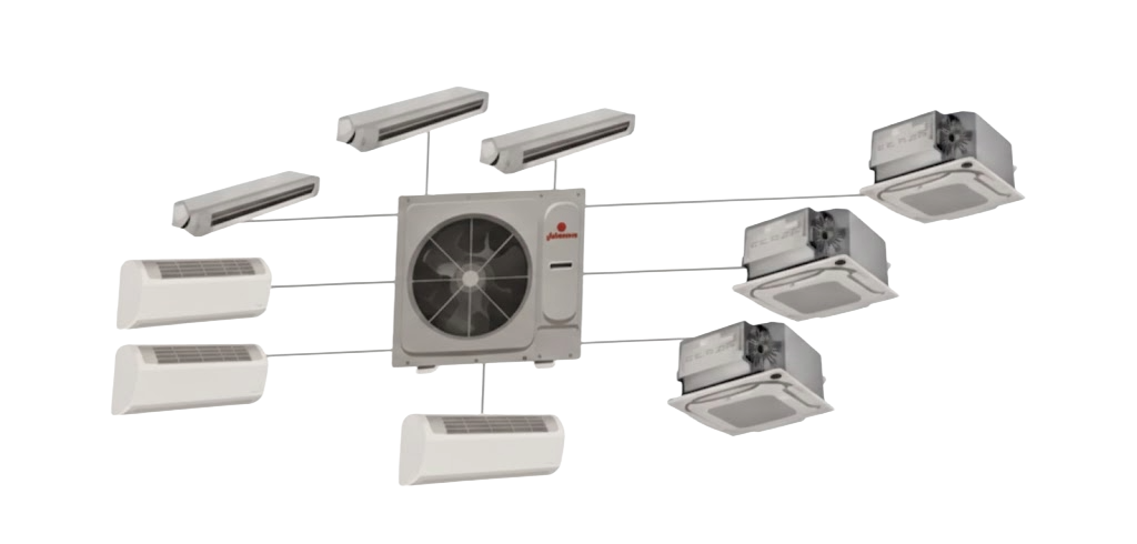 La unidad exterior JPMV3 es el “cerebro” que permite conectar hasta 5 máquinas. Estas son las unidades interiores de Johnson que puedes combinar: